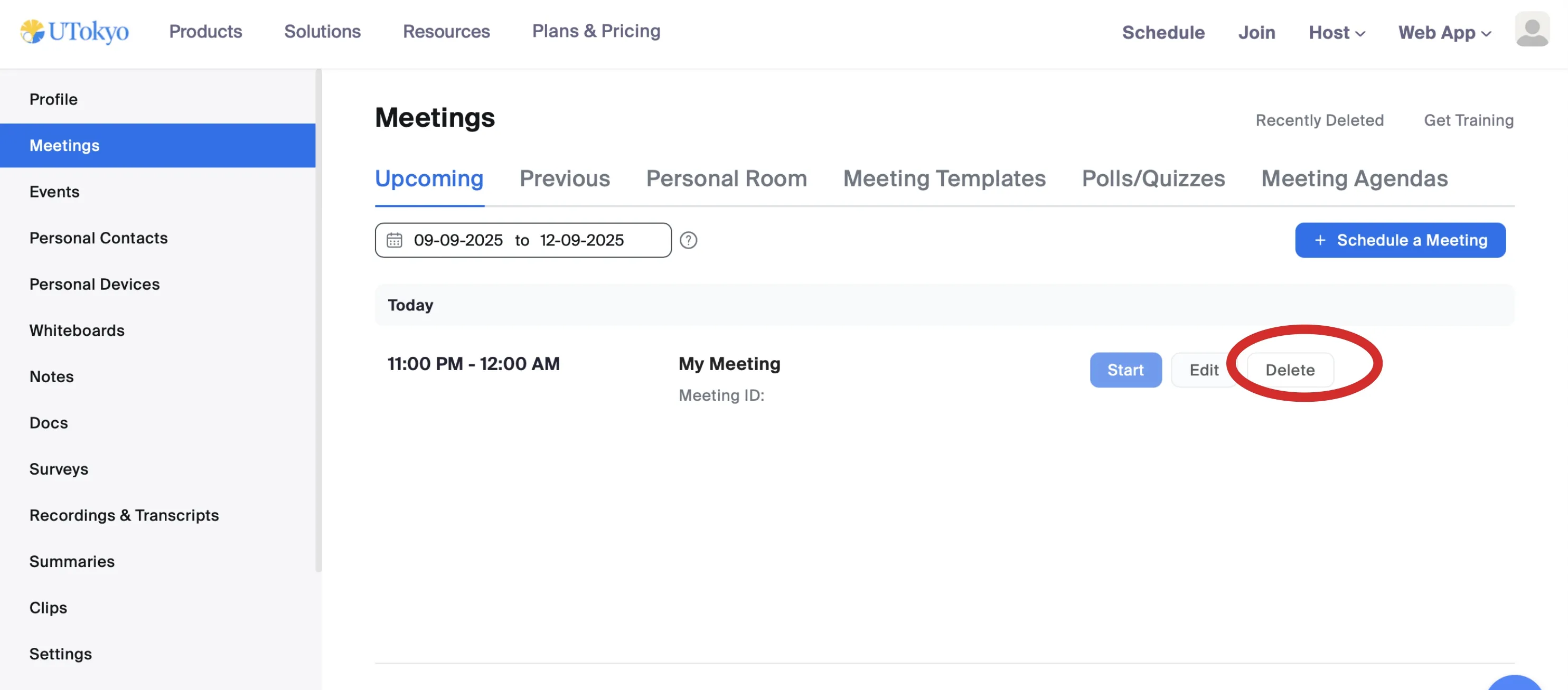 This page explains in detail how to review and change meeting settings and how to delete meetings. Some operations can also be performed through the Zoom app, but others require the web browser. Here, we primarily describe how to operate from the browser.