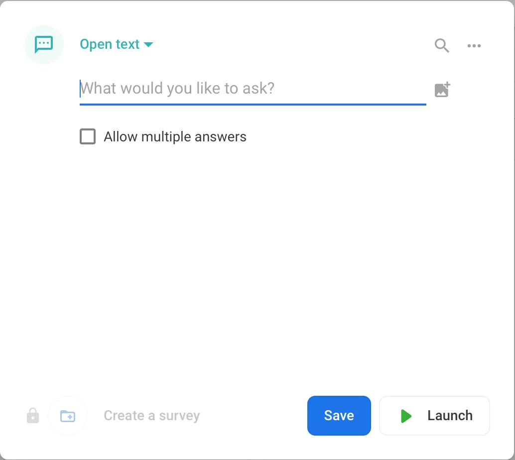 - Word cloudー参加者の回答が「cloud」として可視化される質問を設定する(参加者はOpen textと同様に短文形式で答える)
