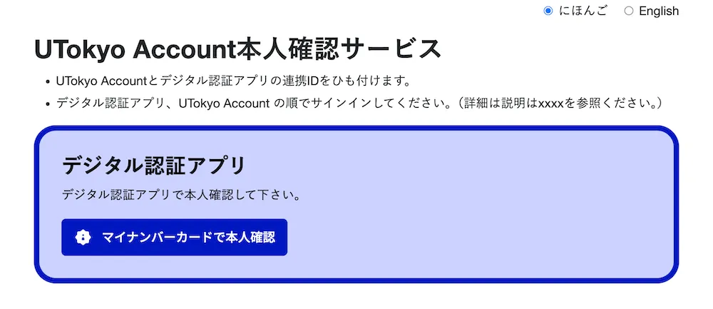 1. UTokyo Account本人確認サービスにPCでアクセスしてください.