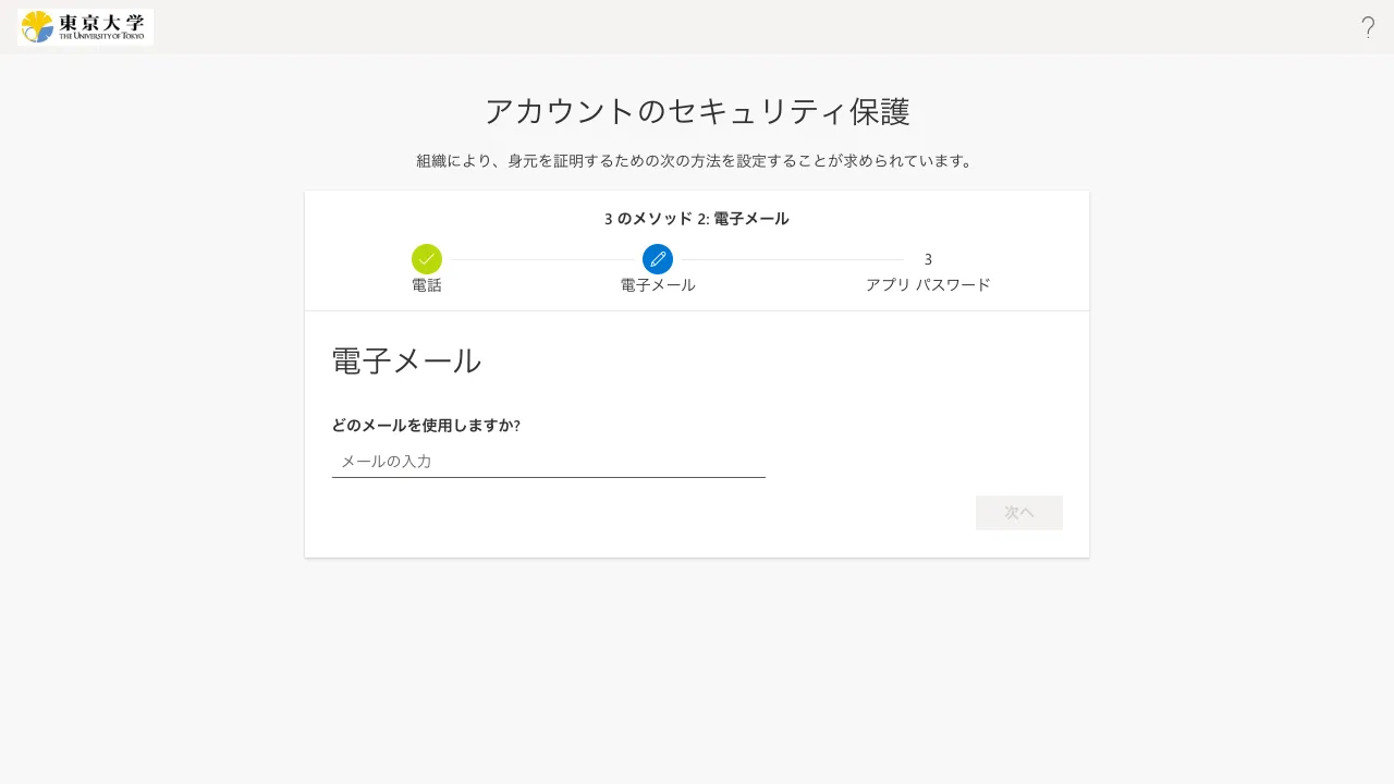 - UTokyo Accountでサインイン時(パスワード入力後)に,デフォルトの本人確認方法で多要素認証の本人確認を行う画面が表示されますが,その画面で「問題がありますか? 別の方法でサインインする」あるいは「Microsoft Authenticator アプリを現在使用できません」というリンクを押してください.